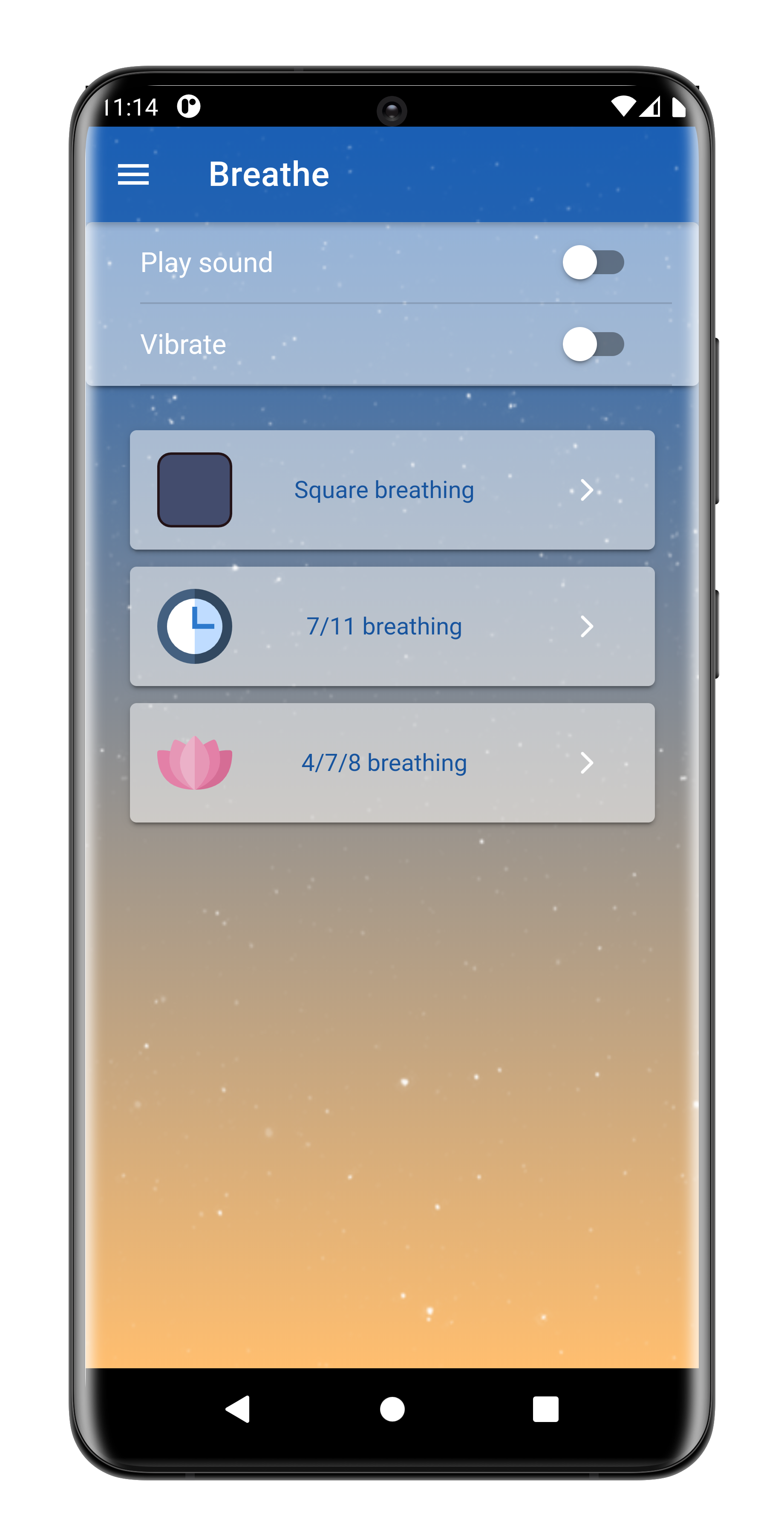 A simple user interface, with no distractions. Open the app, breathe, close the app. That's it!